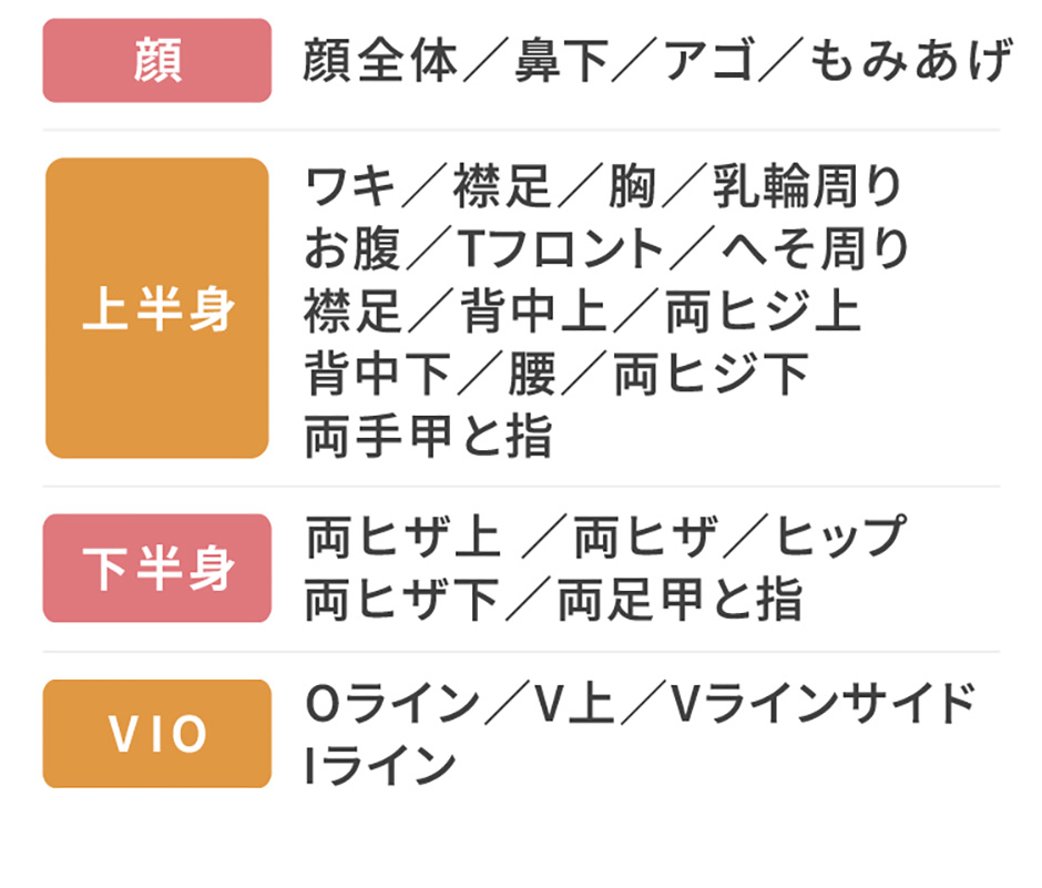 脱毛できる箇所