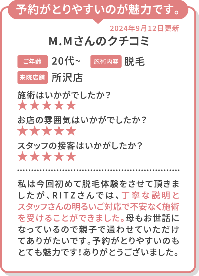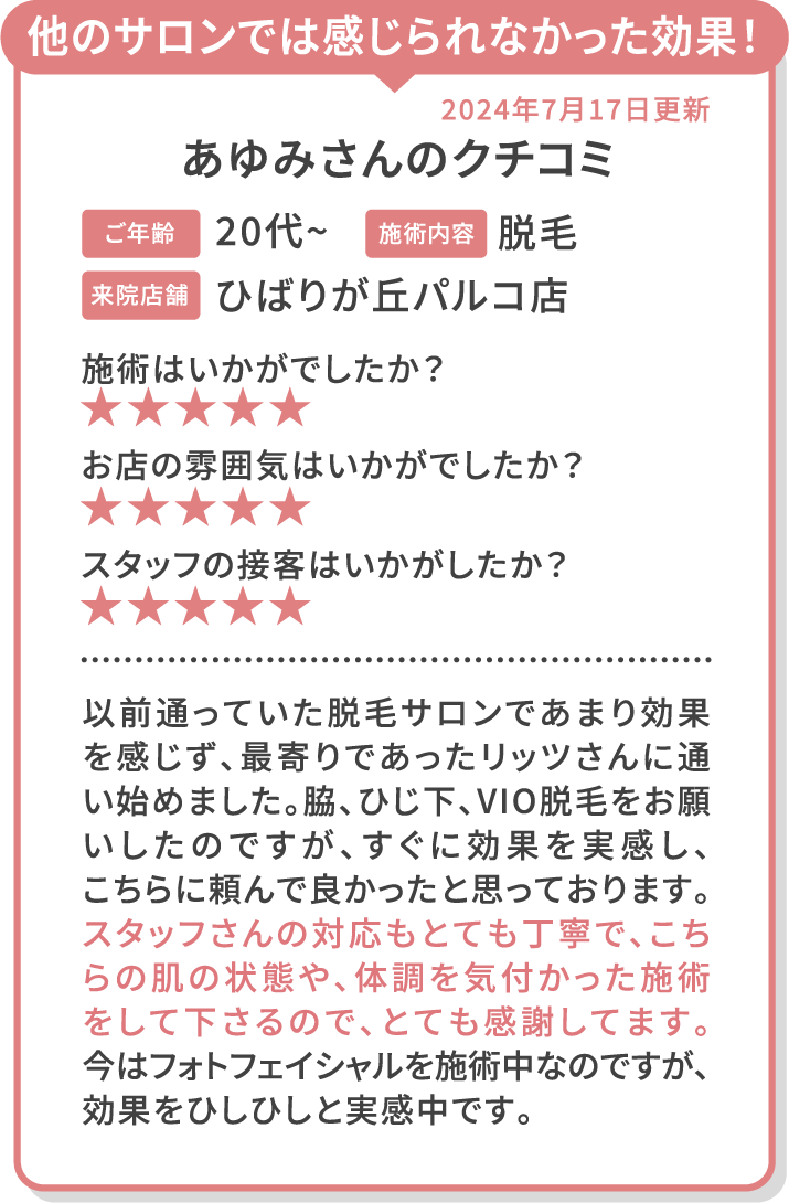 脱毛メニュー