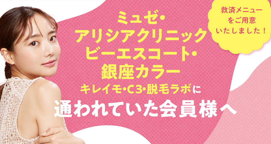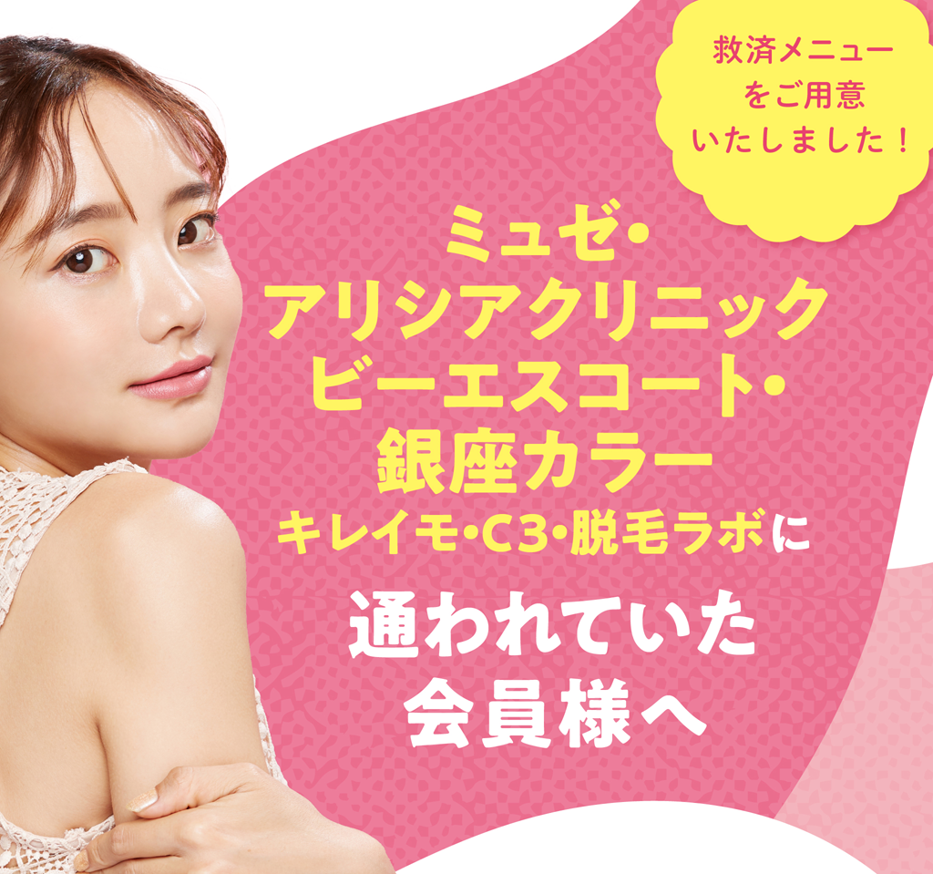 【ミュゼ・アリシアクリニック・ビーエスコート・銀座カラー・キレイモまたはC3、脱毛ラボに通われていたお客様の救済メニュー】